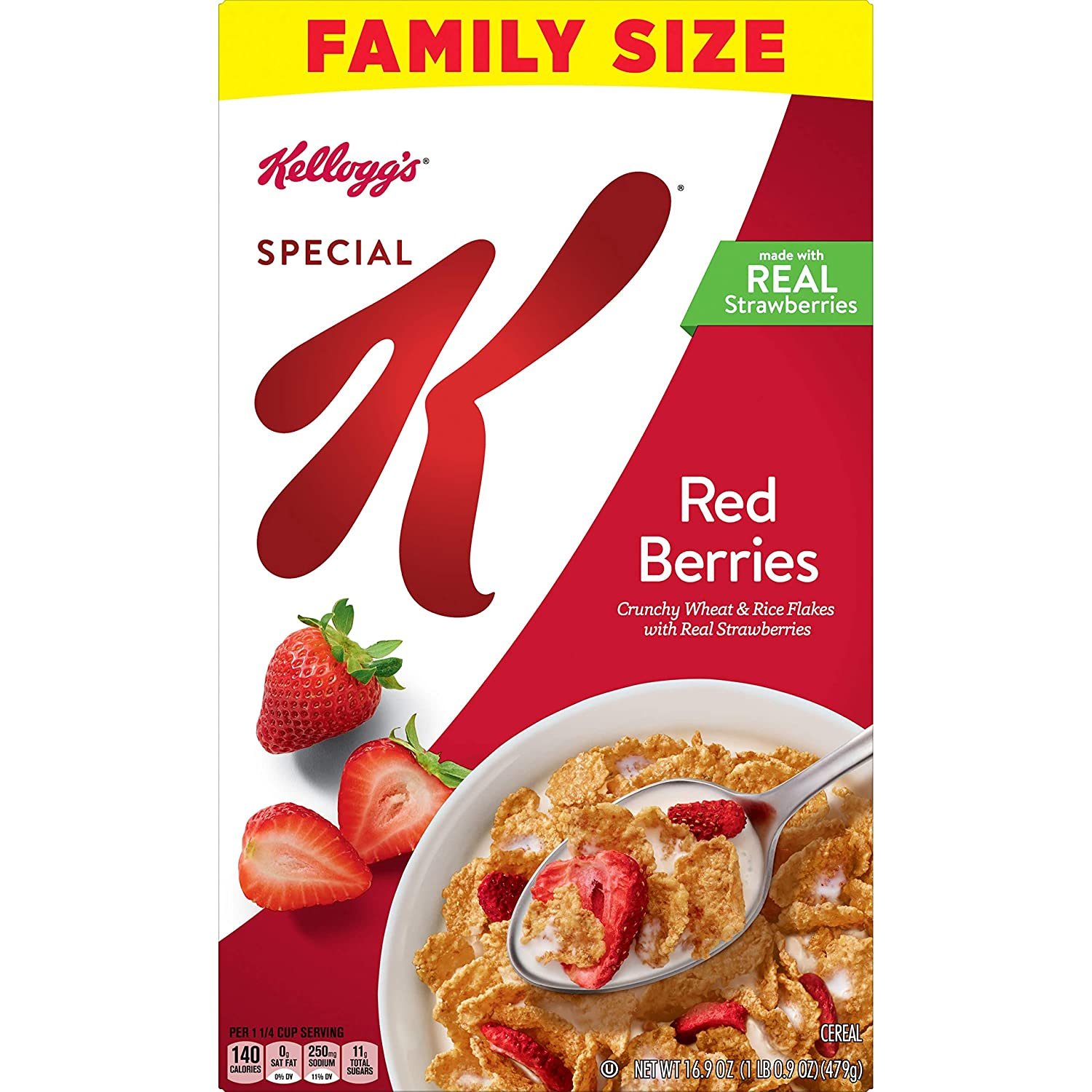 Saluda el día con la bondad simple del cereal Special K Red Berries de Kellogg’s, un cereal saludable y deliciosamente elaborado que te hace sonreír con cada cucharada saludable. Este cereal está repleto de fresas reales y está hecho con hojuelas de trigo y arroz agradablemente dulces para inspirar una primavera en sus pasos para el día que viene. Tan nutritivo como delicioso, este cereal para el desayuno está hecho con granos integrales, fibra y contiene vitaminas y minerales esenciales para ayudarlo a sentirse mejor. Comida saludable y lista para viajar que no es solo para el desayuno, este cereal es un refrigerio estimulante en la oficina, entre clases, mientras viaja y durante otros momentos ocupados y en movimiento. Espolvoréelo en su yogur favorito para agregar sabor y textura, use este cereal como base para una excelente mezcla de frutos secos casera o cómelo directamente de la caja para reabastecerse rápidamente después de su entrenamiento; las deliciosas opciones son infinitas. No importa cómo lo disfrute, el cereal Special K Red Berries de Kellogg’s lo ayuda a energizarse para lo que le espera.